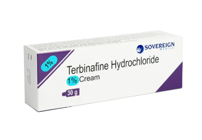 Terbinafine Cream is an antifungal medication used to treat various fungal skin infections such as athlete's foot, jock itch, and ringworm.